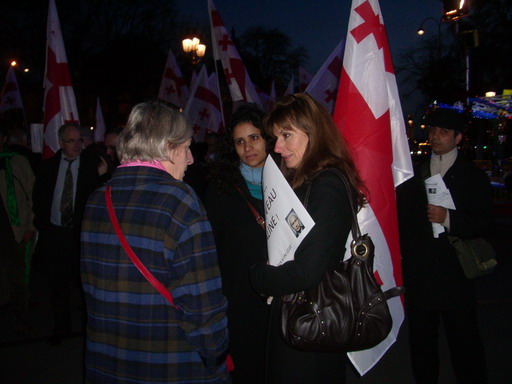 Грузинская диаспора в Париже провела акцию, приуроченную к приезду российского премьера Владимира Путина. Цель акции — протест по поводу политики России в отношении Грузии, а также — напомнить Европе об учащающихся нарушениях прав человека в самой России. В частности, участники акции держали плакаты, где Путина называют новым Сталиным.