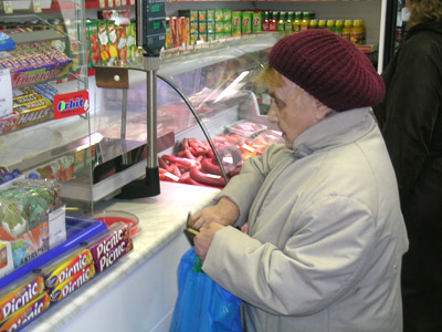 В августе в стране только и разговоров, что о мясе. Всему Байнету доподлинно известно, что "в "Короне" мяса нет". Форумчане делятся советами, в каких магазинах искать антрекоты и где караулить курятину. Самый верный адрес - универсам "Центральный", туда по утрам привозят "мороженую говядину Минского хладокомбината I сорта" по фиксированной цене около 18 тыс. BYR, страшную с виду и почти без мяса. В "Гурмане" в это время мясное изобилие по сумасшедшим для летних зарплат ценам - 60-65 тыс. BYR/1 кг. На "Комаровке" телячья вырезка доходит до 90 тыс. BYR. В обычных универмагах пустые мясные витрины стыдливо прикрывают шпик свиной и свиные ноги.