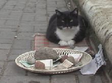 Как сообщили работающие поблизости продавцы, кот принадлежит 80-летней пенсионерке, которая из милосердия забрала его из пункта приема и временного содержания животных по улице Гурского, 42. Но поскольку дома у бабушки обитают еще несколько кошек и собака, прокормить их на свою мизерную пенсию ей не под силу. Вот и выручает Барсик со своей "индивидуальной предпринимательской деятельностью", собирая подаяния на прокорм себе и своим сожителям. Кот уже привык к своей ответственной миссии (а сидит он здесь, как правило, около трех часов пару раз в неделю), с рабочего места не отлучается, бдительно следит за пополнением казны.