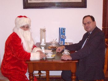 Дед Мороз, он же по совместительству лидер Объединенной гражданской партии Анатолий Лебедько, поздравил с наступающим Рождеством и Новым годом руководителей дипломатических миссий зарубежных государств и международных организаций. Кроме традиционных белорусских напитков, политик подарил дипломатам …телевизор. Точнеее — «Народный телевизор» — брошюру, в которой собраны высказывания двух политиков, Александра Лукашенко и Анатолия Лебедько по актуальным вопросам внутренней и внешней политики. Мы предлагаем нашим читателям предрождественскую фотосессию «Дед Мороз и дипломаты».