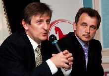 27 сентября в Москве состоялась пресс-конференция кандидата на пост президента Беларуси Ярослава Романчука и председателя ОГП Анатолия Лебедько.