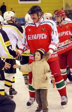 Наш главный хоккеист, традиционно выходящий на лёд под номером 1, сегодня сыграет очередной матч. «Глава государства примет участие в хоккейном матче между командами “Сборная звезд мира” и “Газпром экспорт”, который пройдет вечером в Москве», – сообщает «официальный интернет-портал Президента Республики Беларусь» (эту новость повторили Белорусское телевидение и радио). Что любопытно, – это единственная подробность, которую официоз счёл нужным сообщить в связи с визитом. Как самую важную, надо полагать.При этом из сообщения неясно, за какую именно команду сыграет белорусский визитёр: то ли он готов осчастливить «Газпром», от которого и в дальнейшем хочет получать преференции – то ли он «мировая звезда».Не сообщается также, взял ли «батька» с собой, хотя бы на хоккей, по обыкновению, младшего сына Колю.На предыдущую ледовую баталию – или, точнее сказать, ледовое шоу, имевшее местог в прошлые выходные – диктатор своего отпрыска брал. Оно бы, может, и нормально – если бы не некоторые нюансы.В зале Дворца спорта, что на проспекте Машерова – который Лукашенко назвал «проспектом Победителей», видимо, имея в виду себя – обеспечили аншлаг. Дворец спорта сплошь набили студентами и школьниками. Как рассказал студент Университета информатики и радиоэлектроники Анатолий В., сие «спортивно-массовое мероприятие» добровольного характера отнюдь не имело. Посетовал при этом, что куратор старается выслужиться перед начальством в идеологическом плане, – поэтому их группу чаще других привлекают к подобной лабуде.В этом матче хоккеист Александр Лукашенко играл за команду ветеранов против действующих хоккеистов с Гродненщины. «Батькина» команда на проспекте Победителей, разумеется, победила (со счётом 10:6) – да я вообще не припомню, когда она проигрывала. Как это Лукашенко, наш главный Победитель, может проиграть?! Надо бы его брать в сборную Беларуси, на первенство мира – тогда она точно завоюет золотые медали. При условии, конечно, что чемпионат будет проходить в Беларуси, все судьи будут наши, и все правила будут устанавливаться – и меняться по ходу, когда надо – нами же. Ну, примерно как на белорусских выборах.Впрочем, мы слегка отвлеклись. Здесь хочется вернуться собственно к ледовому шоу. Бенефисом коего стал момент, когда после матча «батька» выехал на лёд с сыном Колей. Причём бедных зрителей наблюдать это шоу в буквальном смысле заставили. После окончания матча они подумали, что наконец-то отмучились – но не тут-то было: охрана не выпустила молодых людей из Дворца, – мол, дождитесь окончания.На какую реакцию рассчитывает Лукашенко, устраивая подобного рода шоу? Неужели на восторг и умиление? Не знаю, может быть, в Шклове это и вызвало бы такие чувства, но в Минске вызывает только хохот (смеяться зрителям охрана пока не запрещает). Плюс раздражение из-за потерянного времени. В СМИ появлялась информация (хотя и неподтверждённая), что «легализовать» внебрачного сына Александру Лукашенко посоветовал британский пиарщик лорд Белл. Возможно, это так – и я, кстати, в самом факте признания не вижу ничего плохого – но зачем же, «молясь Богу, расшибать лоб»? Зачем ставить и самого себя, и своего ребёнка в комичное положение? Зачем таскать – и демонстрировать, как цирковую обезьянку – бедного мальчика на все мероприятия, от войсковых учений до