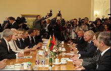 С трибуны А.Лукашенко, лишь изредка посматривая на лист бумаги, энергично говорил около получаса. Участники форума встретили белорусского президента, которого называют последним диктатором Европы, стоя. А.Лукашенко пришел в сопровождении премьеров Литвы и Беларуси Андрюса Кубилюса и Сергея Сидорского.