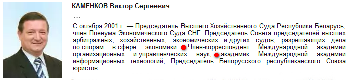 В Беларуси существует еще один подобный государственный псевдовеликий ученый-законник – председатель Высшего хозяйственного суда Беларуси Виктор Каменков.