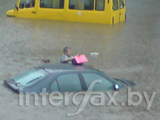 Ливень, обрушившийся на столицу 24 июля, вновь вызвал затопление многих улиц города. Как сообщили корреспонденту interfax.by в ГАИ Фрунзенского района, сейчас вода блокировала пересечение улиц Одинцова и Якубовского. Там заглохло несколько автомобилей, перекрыв движение транспорта. Вышедшими из строя автомобилями блокирован перекресток улиц Лобанка и Притыцкого. Под мостом путевой развязки на проспекте Дзержинского глубина воды достигает пояса. Возле торгового дома «Паркинг», на улице Куйбышева, автомобили застыли, погрузившись под воду по самые фары.