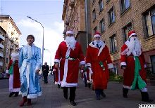 Каля дзесятка праваабаронцаў апрануліся ў строі Дзядоў Маразоў і шэсцем накіраваліся ў Генеральную пракуратуру Беларусі, дзе перадалі зварот генеральнаму пракурору Рыгору Васілевічу.