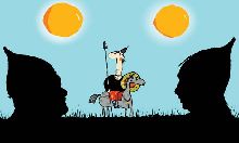 А по мне, так России родимой, не сочтя эту меру за лесть, обозвать бы Володей и Димой все, что в мире бинарного есть! Вот, багрянцем светясь нездорово, по небесному своду плывут Марса спутники — Дима и Вова (Страх и Ужас их также зовут). Вот герой, Одиссей нелюдимый, пролагает неведомый путь между грозными Вовой и Димой (про Харибду и Сциллу забудь). Вот астрологи, яйцеголовы, все у неба узнают про нас по созвездию Димы и Вовы (Близнецы устарели как класс). Живы мы не Москвою единой — две столицы, пора бы понять; назовем же их Вовой и Димой — чтобы раз в восьмилетье менять! Чтобы крепла российская слава и не трескался ядерный щит — заменил бы я «лево» и «право»: «дима-вова» — не хуже звучит. Я стихи сочиняю для «Новой», позабыв про воскресный покой, — а печатаю димой и вовой, то есть левой и правой рукой. Пусть рассердится прапор суровый, образцовый службист-солдафон: «Что вы, черти, шагаете вовой? Димой, димой!» — скомандует он. И еще я похерил бы, к слову, все команды про «первый-второй»: «Рассчитаться на диму и вову!» — вот как рявкнет новейший герой.