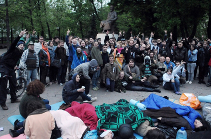 «Нас упрекают, что мы сидим и ничего не предпринимаем, - сказал корреспонденту «Новой газеты» активист по имени Кирилл. - А у нас нет цели брать Кремль. Привлекаем внимание к себе. У нас здесь Гайд-парк. Если где-то собираются люди, свободно обсуждающие точку зрения, противоречащую официальной - это работает». Он отметил, что сюда приходят и аполитичные люди, и люди, лояльные власти - их втягивают в дискуссию.