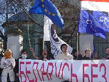 Как рассказал председатель «БЭЗ» Змитер Пименов, «это информационный пикет, во время которого мы распространяем заявление партии КХП БНФ, в котором говорится, что политики Европы должны рассмотреть вопрос о том, что белорусы не имеют возможности подавать жалобы в Страсбургский суд по правам человека. Это одно из наших требований».