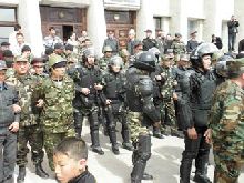 Ранее сотрудник неправительственной правозащитной организации, находящийся в Таласе, сообщил, что скоплений людей возле зданий обладминистрации и областного УВД уже не наблюдается. Сторонники оппозиции рассредоточились и мелкими группами ходят по улицам. "Люди ждут решения от избранных ими новых властей - что будет дальше", - пояснил собеседник агентства. Он сказал, что сторонники оппозиции выдвигают политические требования, которые касаются отставки президента Курманбека Бакиева, возвращения в собственность приватизированных распределительных сетей, отмены повышения тарифов на электроэнергию. По его словам, участники акции сожгли портрет президента.