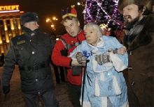 Как рассказала сама Л.Алексеева, она пришла на Триумфальную площадь, где установлена новогодняя елка, в костюме Снегурочки с нашитыми на него цифрами 31. "Ни в одном законе не прописано, что Снегурочке возбраняется добавить к своему наряду аксессуар с надписью в защиту 31-й статьи", - возмущается своему задержанию глава Московской Хельсинкской группы. Она также отметила, грубое отношение сотрудников милиции.