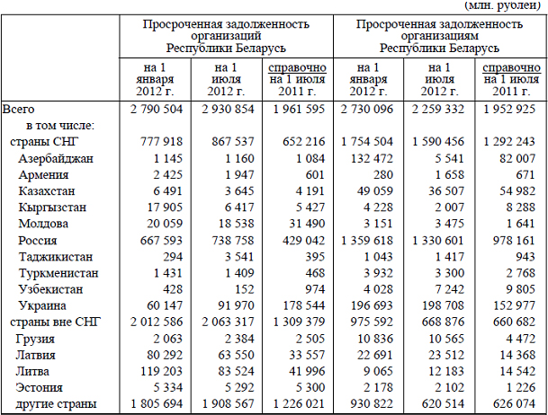 А вот с Казахстаном вообще долги отличаются на порядок. На 1 июля просроченная задолженность предприятий Казахстана превысила 35 млрд. рублей, тогда как белорусские предприятия должны лишь 3,6 млрд. рублей.
