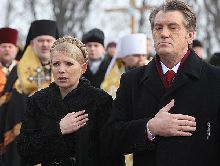 Тимошенко и Ющенко, возлагая венки, поговорили о Януковиче и антиукраинской клике
