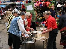 На Цэнтральным рынку Баранавічаў маламаёмных частавалі баршчом. Арганізаваў абед лідэр мясцовых індывідуальных прадпрымальнікаў Мікалай Чарнавус. Падсілкаваліся каля ста чалавек.