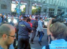 Задержания начались после многократных предупреждений в громкоговорители о том, что акция не согласована с властями, нарушает общественный порядок и мешает движению транспорта и людей, сообщает "Интерфакс". Сотрудники милиции продолжали через мегафоны увещевать собравшихся и задерживали тех, кто выкрикивал лозунги против действий московских руководителей. На месте событий находились около 70 журналистов, многие из них снимали происходящее.