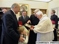 Кардынал Бэртонэ падараваў Колю мяч