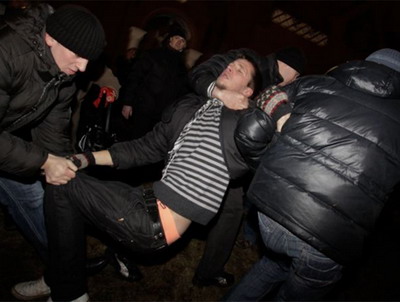 Еще перед входом на станцию метро нас перехватили и привели в комнату милиции метрополитена, где мы просидели минут 20. Из метро нас вывели в направлении Дома офицеров и посадили в микроавтобус, в котором уже находились задержанные Сильченко и Грибовская и отвезли в Центральный РОВД, где мы пробыли еще 3 часа. Причем, в РОВД на нас не составлялось никаких протоколов и не совершалось никаких процессуальных действий, кроме фотографирования и изъятия телефонов (кстати, тоже никак не задокументированного).