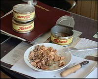 Спадар Анатоль, які працуе ў кансэрвавым цэху, вымушаны прадаваць кансэрвы суседзям і знаёмым, каб мець жывыя грошы, але зрабіць гэта па тых коштах, якія налічыў мясакамбінат, сёньня немагчыма: