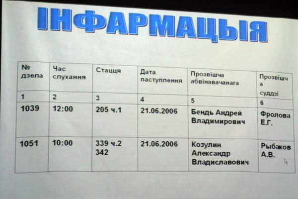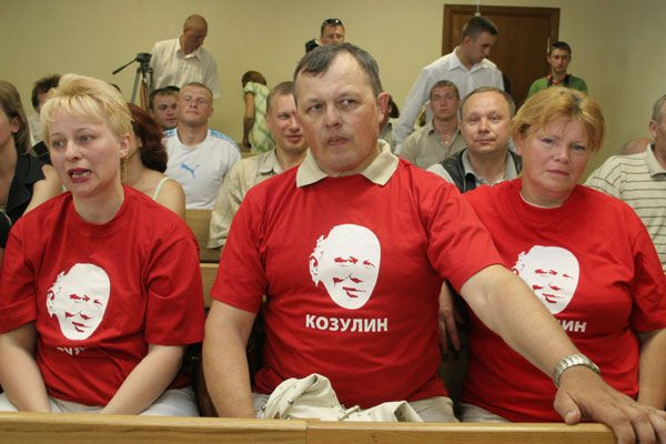 13:15, 6 Июля | , Фото: Юрий ДединкинПредлагаем вниманию читателей фоторепортаж из суда Московского района. Материалы о процессе над Александром Козулиным размещены ниже. На снимках – жена Козулина Ирина и дочь Ольга, судья Алексей Рыбаков, прокурор, который, судя по выражению лица, явно томится в скуке. Нет только самого подсудимого: А.Козулина фотографировать запретили.