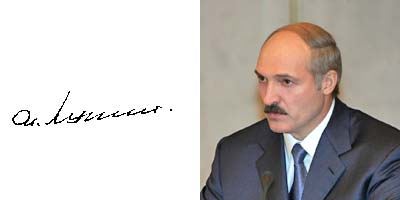 На суд графолога, мы отправили три подписи президента - 2002, 2004 и 2005 годов. Не зря ведь говорят, что со временем подпись и характер человека меняются. Графолог выдал свое заключение: Александр Лукашенко - «волевой человек, силен характером и телом. Его природная простота каким-то особым способом соединена с демонстративной простотой. Он скрытен настолько, насколько это нужно для дела (ну, без этого президенту никак! - Прим. авт.). До совершенства укрепляет свои тылы и не терпит сопротивления». Кстати, о ранней президентской подписи (2002 год) специалист говорит, что «она была сделана в момент максимальной концентрации воли, когда он максимально контролировал себя. Единственное, что в тот момент не подверглось ломке, так это мощное чувство «я», которое, несмотря на все удары, всегда готово нанести контрудар».