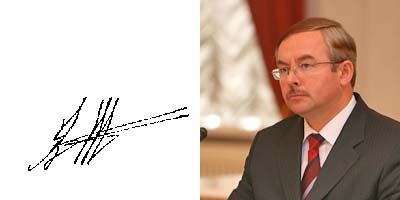 «Этот человек мне симпатичен», - признался графолог. По его мнению, белорусский премьер сильный и в то же время мягкий человек: «Рискну предположить, что он не чужд искусствам или, по крайней мере, просто творческая личность. Упрям, горячо отстаивает свою точку зрения, но никогда не оскорбляет при этом оппонента. За короткий промежуток времени у него может меняться настроение, но это нельзя назвать неуравновешенностью. Не жаден, гуманен (причем не любит этим красоваться). Сейчас обстоятельства его несколько зажали (подпись годичной давности. - Прим. авт.), и в характере проявляется замкнутость. А вообще, это цельная натура, довольно волевой человек. Он готов к риску, он оптимист - уверен в своем успехе».