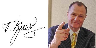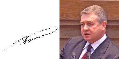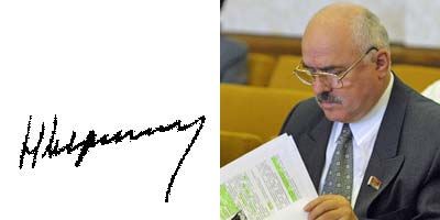 Экс-кандидату от графолога досталось: «Заносчивый, несколько высокомерный человек (признаться, не замечали. - Прим. авт.). Но надо отдать ему должное - личность не серая. Не лишен внутренней тонкости, хотя и не «белая кость». Похоже, что основой его гордости за себя служит поприще, занимаемое положение» (автограф был сделан перед президентскими выборами. - Прим. авт.).