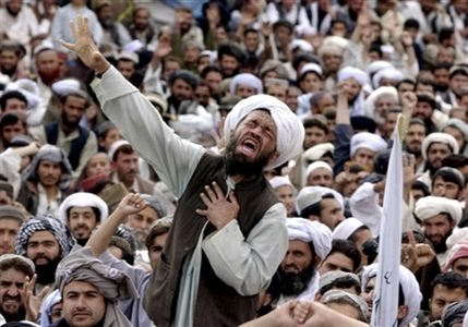 Люты. Пакістанцы пратэстуюць супраць карыкатураў на прарока Мухамэда ў дацкай газэце, Куэта