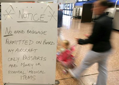 Жнівень. Абвестка ў аэрапорце пра новыя нормы для авіяпасажыраў пасьля раскрыцьця пляну тэрактаў у Брытаніі, Бэлфаст