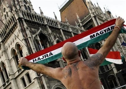 Верасень. Пратэстоўца перад будынкам парлямэнту Вугоршчыны, Будапэшт