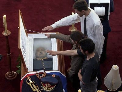 Сьнежань. Чылійскія фашысты салютуюць над труной генэрала Піначэта