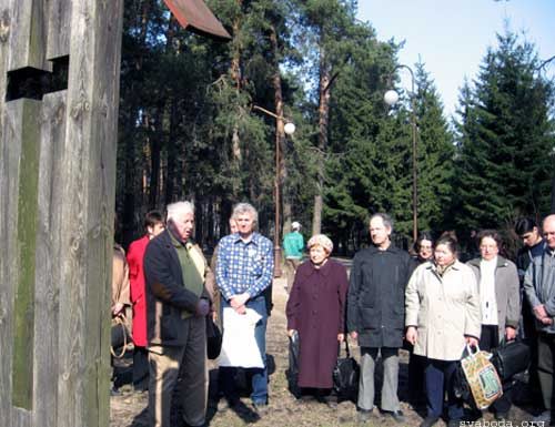 Сярод прысутных былі сябры аргкамітэту дзеля ўшанаваньня памяці ахвяраў палітычных рэпрэсіяў гісторык Ігар Кузьняцоў, пісьменьнік Васіль Якавенка, палітык Вячаслаў Сіўчык, сакратар аргкамітэту Ўладзімер Раманоўскі, старшыня Асацыяцыі ахвяраў палітычных рэпрэсіяў Зінаіда Тарасевіч ды іншыя.