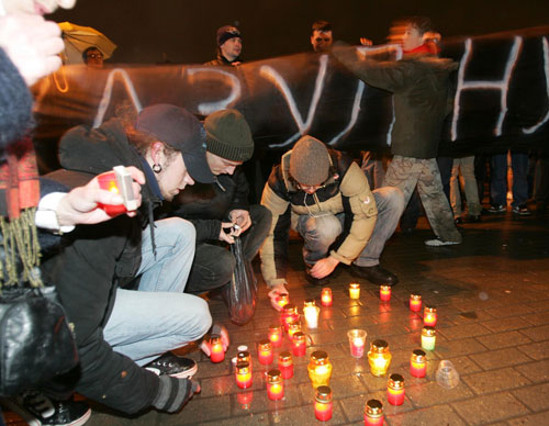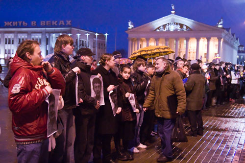 Акция скорби началась 25 февраля в 18 часов на Октябрьской площади.