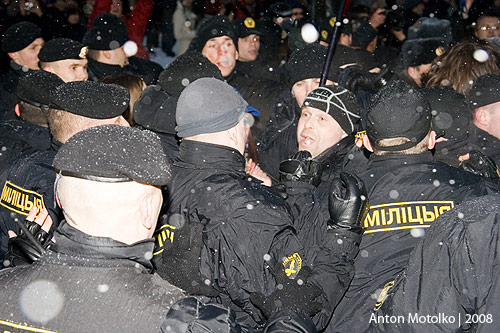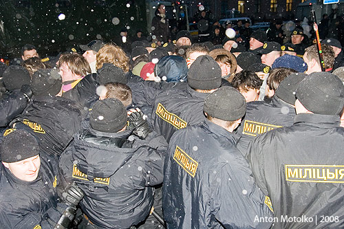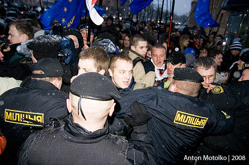 В их числе — лидеры и активисты молодежного демократического движения Дмитрий Дашкевич, Артур Финькевич, Иван Шило, КристинаШатикова, Екатерина Соловьева, а также журналисты газеты "Наша нiва"Семен Печенко и Андрей Ленкевич. В УВД Московского района доставлены студенты из Кракова Гжегож Лабус и Павел Яшин. Сообщается также о задержании Юрия Бирюкаиз Украины. По словам очевидцев, при задержании бойцы спецназа избивали демонстрантов дубинками и ногами.