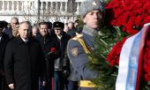 По традиции военнослужащие президентского полка установили у Вечного огня венок с лентой в цветах российского флага Подробнее
