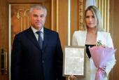 Яна Лантратова получила Благодарность Председателя ГД за вклад в законотворческую деятельность