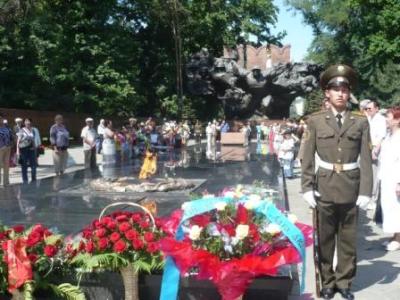 22 июня в 10.00 в Парке 28 гвардейцев-панфиловцев г. Алматы состоялась торжественная церемония возложения цветов к Вечному огню у Мемориала славы