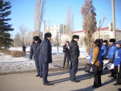 На подходе к Областному акимату алговцев уже ждали полицейские во главе с зам.начальника Заводского отдела полиции, а также неподалеку стоял автобус видимо, подготовленный для алговцев. Следует отметить, что полицейских было больше, чем самих участников акции: на одного алговца приходилось по 2 полицейских.