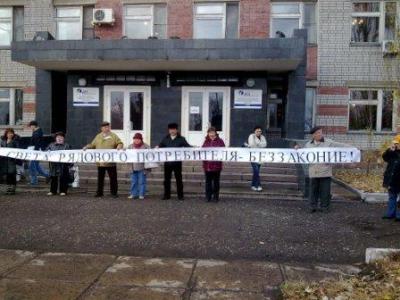 Завершая акцию, ее участники расстелили перед входом в офис предприятия транспарант с надписью: «Отключение от электроэнергии рядовых потребителей – беззаконие!»