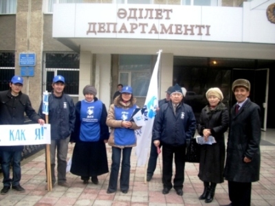 Активисты блока «Народовластие» с плакатами прошли по городу к зданию департамента юстиции, по ходу движения была роздана бесплатная информационная продукция. Во время вручения обращения, присутствовавшие при этом сотрудники полиции интересовались, почему мероприятие проходит в такой холодный день, и выразили беспокойство за физическое здоровье участников. Руководитель ЮКО оргкомитета по созданию НП «Алга!» (бывш. ДВК) Женис Досжанов заявил, что активисты НП «Алга!» (бывш. ДВК) и блока «Народовластие» -- люди закаленные, и минусовая температура никого не испугает, тем более, когда на кону стоят права каждого человека страны.