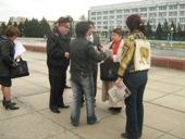 Тем временем к участникам акции стали подтягиваться работники отдела внутренней политики городского акимата. Его руководитель Айтказы Салтабаев со словами «Пошли вы, дуры!» принялся грубо выхватывать газеты из рук сопротивляющихся активисток. Увидев, что его действия фотографируются, стал, выкручивая руки, вырывать фотоаппарат у координатора Гульжан Амангазиной. Не добившись своего, скрылся в акимате.