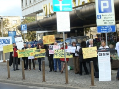 Подобный пикет в поддержку Евгения Жовтиса 28 сентября 2009 года в Варшаве провели польские студенты. Их тогда вежливо попросили отойти от входа в отель «Софитель Виктория», в котором традиционно проходит Совещание. Поляки были очень сильно удивлены этим обстоятельством, потому что в Польше пикеты разрешены в любом месте, без исключения. Причем - самого разрешения не требуется, нужно лишь уведомить о своем намерении. Выяснилось, что к "передвижке" пикета 28 сентября "приложили руку" представители казахстанской официальной делегации, которая ведет себя здесь по-хозяйски.