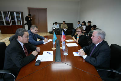Встреча Секретаря Центрального аппарата Народно-Демократической партии «Нур Отан» Мухтара Ермана с директором Института Международных и региональных исследований Ричарда Уокера при университете Южной Каролины профессором Гордоном Б.Смитом, одним из ведущ