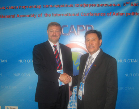 Казахстандын «Нур Отан» Элдик демократиялыкпартиясынын жетекчилигинин чакыруусунун негизинде «Ак Жол» Элдик партиясынынатынан 2009-жылдын 24-26 – сентябрында Астанада өткөн Азиялык саясийпартиялардын Эл аралык конференциясынын 5 - Башкы ассамблеясынын ишинеПартиябыздын төрагасынын орун басары, Жогорку Кенештин депутаты А. Арабаев мененАткаруу комитетинин жооптуу кызматкери А. Кийизбаев катышып келишти.