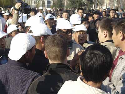 Их митинг пытались разогнать рРно не омоновцы, а боевые отряды, нанятые одним из криминальных авторитетов (ныне покойным), сочувствовавших Аскару Акаеву. Эти крепко сбитые ребята начали забрасывать митинг камнями и почти рассеяли десятитысячную толпу.