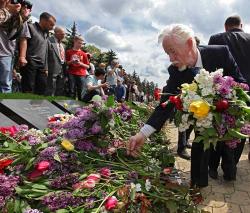 Когда участники Марша Победы подошли к Вечному огню и начали возлагать цветы к могилам советских солдат на мемориале, руководства страны уже там не было.