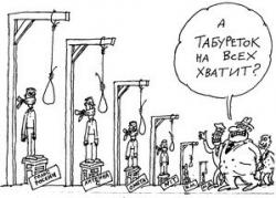 Осталась всего лишь малость: собраться им всем вместе на каком-нибудь братском слете "честных" и "свободных" журналистов или неправительственных глашатаев, готовых за пачку заокеанских долларов мать родную продать, сбацать какое-нибудь письмецо-обращение (помните дело врачей, дело писателей?) и всех неугодных журналистов заклеймить позором и сгноить в лагерях. И напрочь заткнуть им рты, чтобы не гавкали. Теперь мы хозяева жизни и будете только нам подчиняться! Кому непонятно — на фиг с пляжа... И скатертью дорога! А кто не хочет — объявить их террористами, вместе с протестующими стариками, как это сделал нынешний глава МВД, и судить их, то есть всех нас, гнид непослушных, чтоб неповадно было: Чтобы знали, кто такие либералы и что такое демократия: