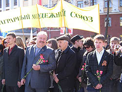 Своеобразным тестом на организованность стали для вятской аграрной молодежи майские праздники. И сдан он был на «отлично»! И 1-го и 9-го мая члены Кировского отделения Российского Аграрного Молодежного Союза в количестве более 100-150 человек – студенты вузов, учащиеся техникумов, молодые специалисты – вместе со старшими товарищами, депутатами Законодательного Собрания области от АПР, работниками пригородных хозяйств, в массовом порядке принимали участие в праздничных шествиях. Неслучайно из уст вице-губернатора А.А.Галицких, открывшего первомайский митинг, прозвучало приветствие, в том числе и в адрес РАМСа, как одной из самых серьезных, целеустремленных и здоровых молодых сил общества.