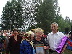 С.И.Брагина и П.Д.Кренделев вручили старейшим и заслуженным людям Пихтинска приветственные адреса, грамоты АПР, ценные подарки.