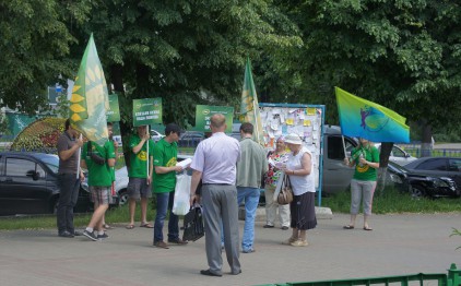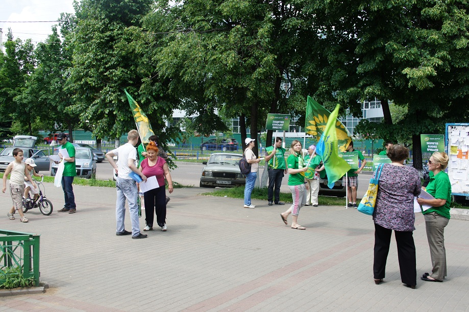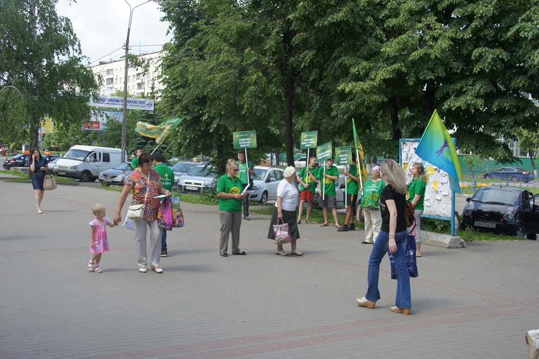 - Сегодня 5 июня – Всемирный день окружающей среды, - говорит сторонник партии «Альянс Зеленых» Владимир Печенин. - Мы собрались здесь что бы донести до населения и властей проблему экологии в городе Королеве. Для города, в данный момент это является одной из первостепенных проблем, так как безудержная застройка города ведет к ухудшению и без того не простой экологической обстановки в городе. Либо мы покончим с загрязнением, либо оно покончит с нами.