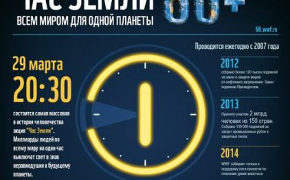 Кажется, невозможно поверить, что в каком-то экологическом мероприятии может участвовать треть населения Планеты – более 2 миллиардов человек из 150 стран мира. И все же, именно столько жителей Земли в прошлом году поддержали глобальную экологическую акцию «Час Земли». Это самое популярное природоохранное мероприятие на планете, занесенное в Книгу рекордов Гиннесса!